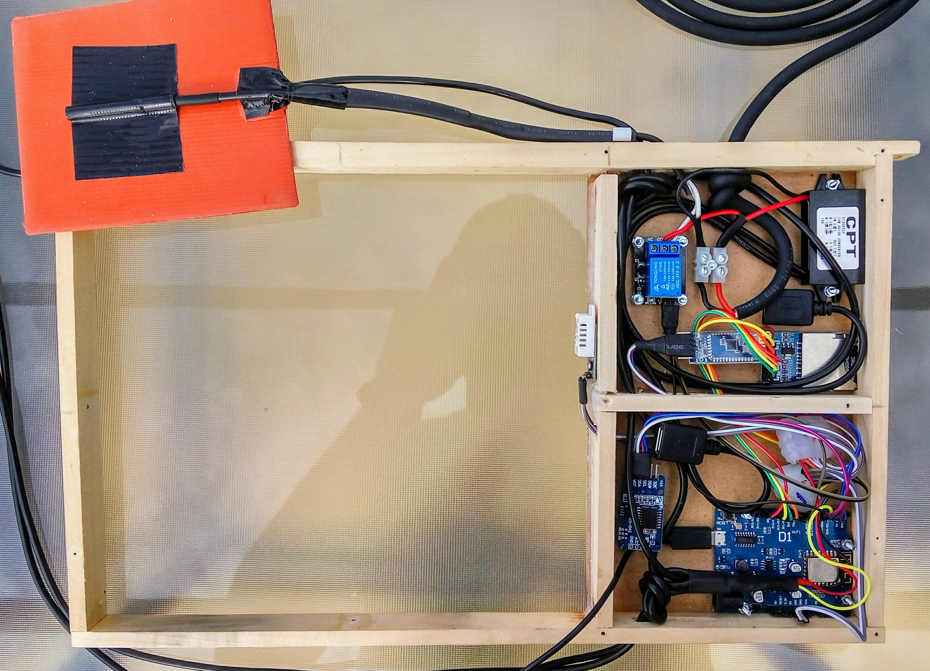 V polovině dubna 2018 se nám testování dostává do fáze zastavění řídící elektroniky do jedné třetiny rámku. Jde hlavně o to, zda se nám povede do tohoto prostoru vtěsnat všechno nezbytné.