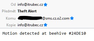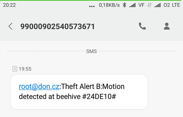 In case the Theft Alert event is triggered (the movement of beehive was detected) a special message is immediatelly send over SigFox network to alert the beekeeper.