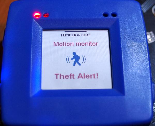 After few seconds without any motion detected is device reset to its normal state and watches for another alert. The temperature monitoring continues.
